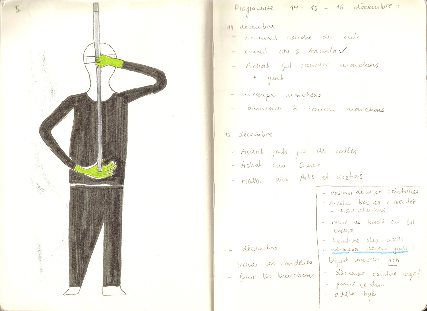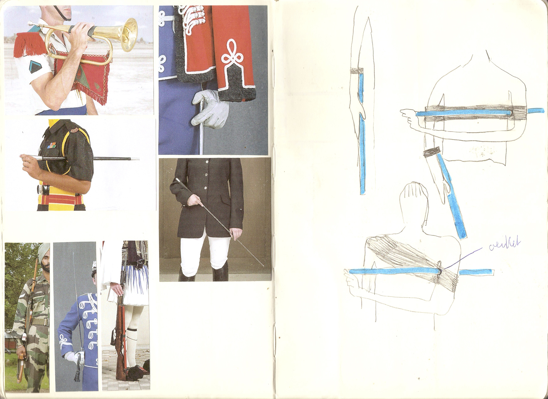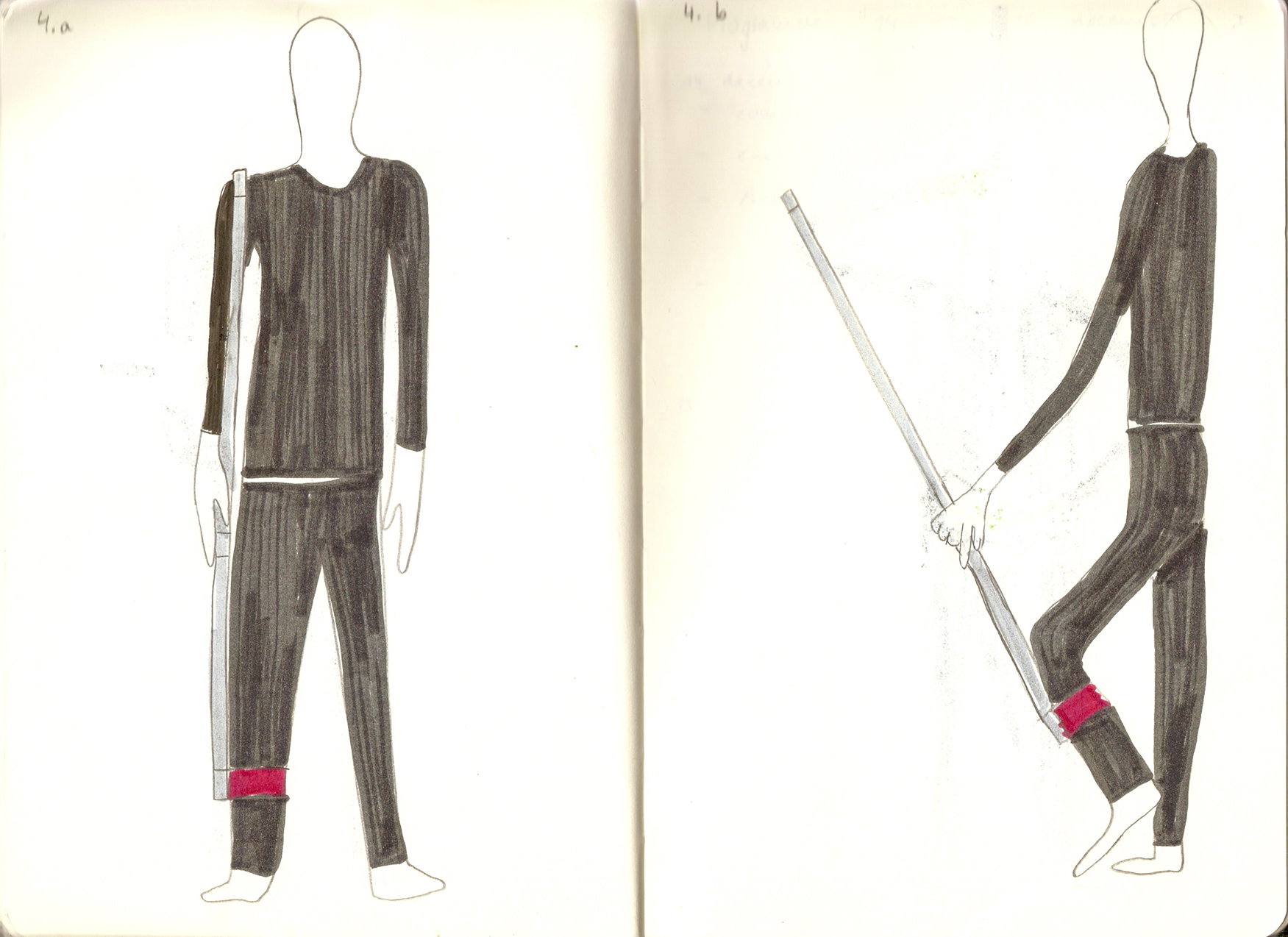 Bâtons is a series of objects composed of gloves, sticks and leather parts that force the body to a certain movement and position. The objects were inspired by the way we hold sticks, weapons, or different accessories, among other things during parades or performances.