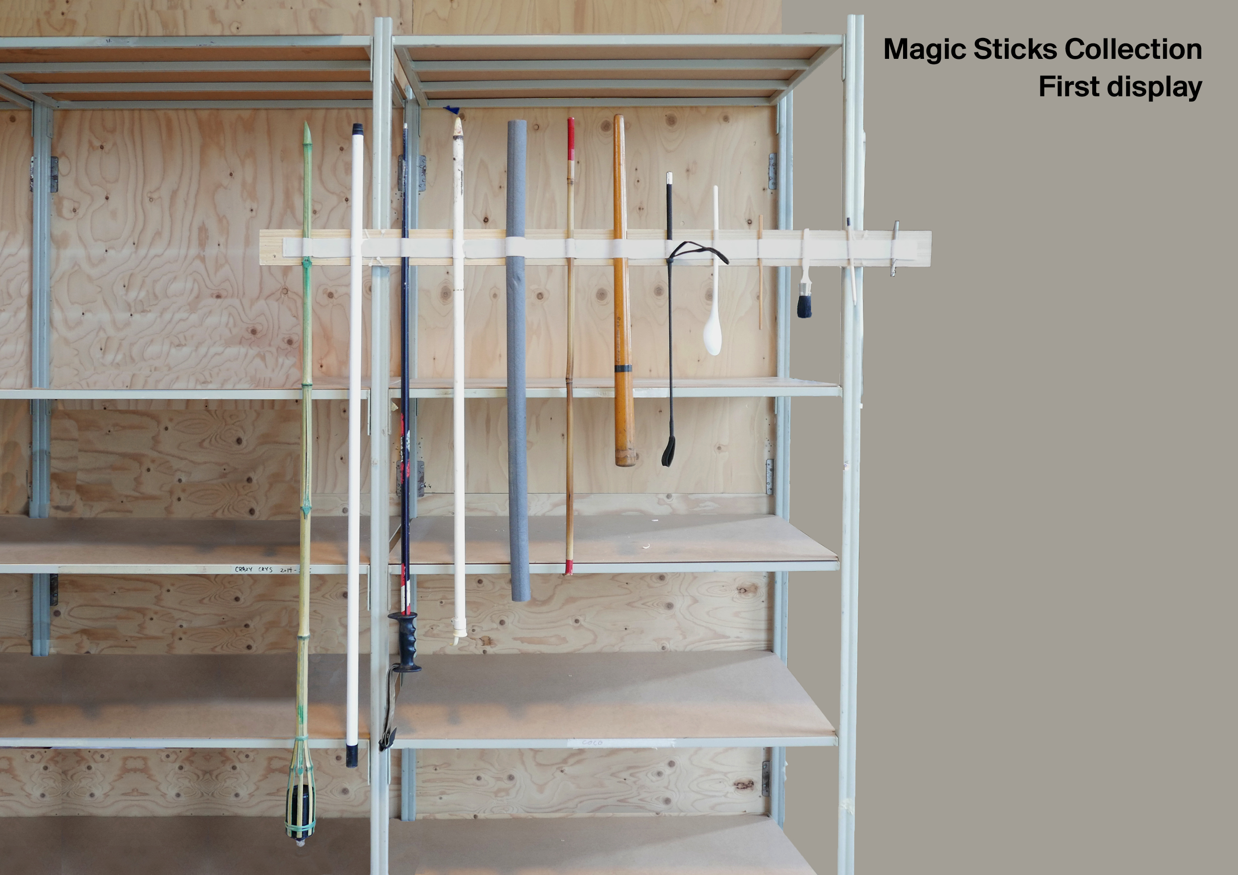 According to its definition, a magic stick is a thin light weight rod, or to put it more commonly any type of elongated shape object. According to this statement, I gathered a magic stick collection creating a more specific set of rules and a tool, to classify and organize them. I create a scenario that I display in a convincing demonstration using different medias and materials. This project makes us look at our immediate environment differently : is my pencil a magic wand? Magic Sticks reflects on the process of creating common beliefs and putting to test some established collective truths.