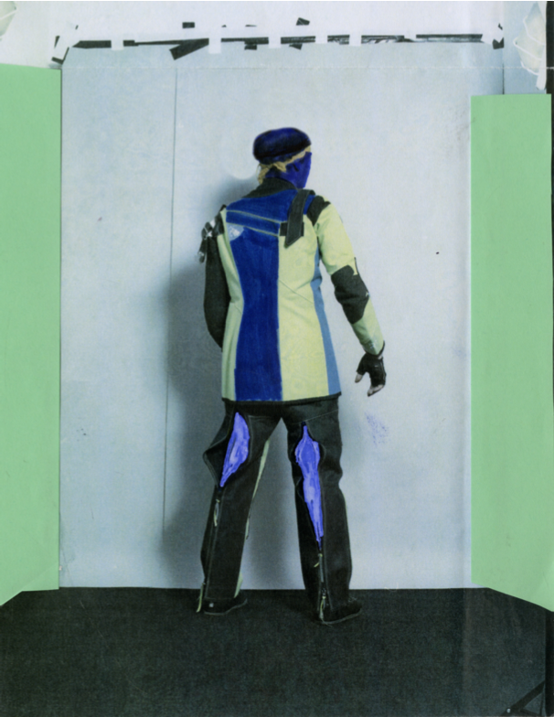 Nous sommes libres et nous restons nos propres maîtres (Tireurs), represent shooters with a complet shooting outfit. These clothing are very technical. Every details counts and they are usually custom made. The outfit has been designed to limit the movements of the body. Very rigid, it gives the shooter’s body a new shape and posture. Beyond the technical characteristics, these outfits works as the symbol of representation of each person in the shooting world. Every shooter can choose his colors, usually two or three. Some even have their names embroidered on them.